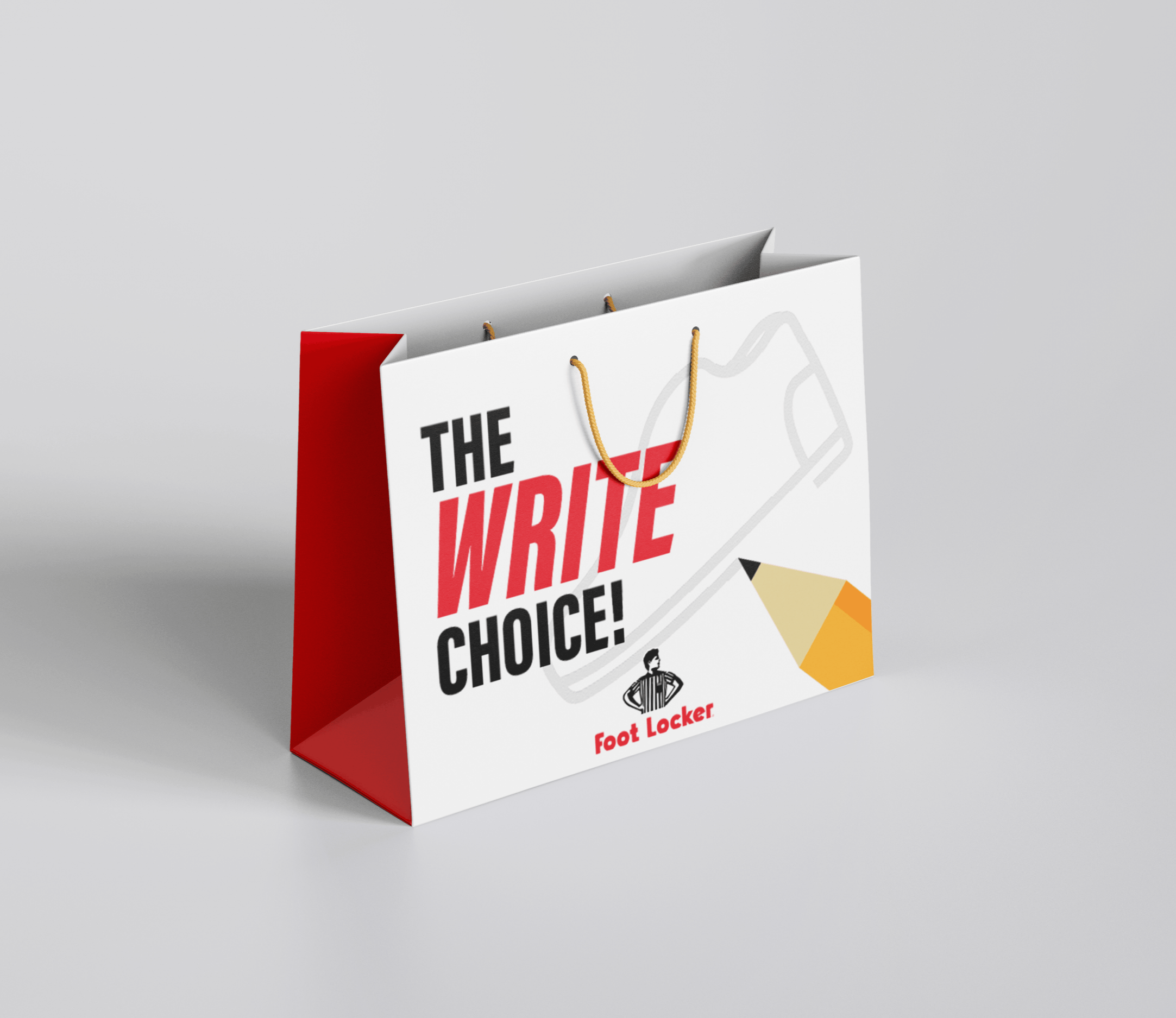 For the Foot Locker seasonal merchandise, I decided to base the designs around back-to-school time. I believe Foot Locker is a popular choice among parents when shopping for their kids’ new shoes before the school year starts. I implemented multiple common school items, such as paper and pencils, into the designs. I also combined different elements of shoes with school supplies to further connect the brand to the season. Finally, I made sure to incorporate the iconic black and white stripes into most of the designs, as it’s the most recognizable design aspect for Foot Locker.